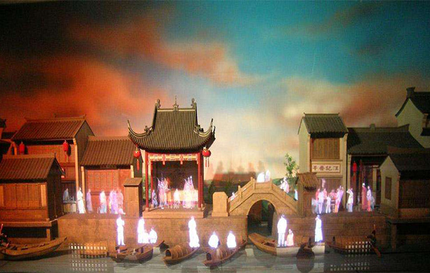 全息幻影成像系統也稱虛擬成像是基于“實景造型”和“幻影”的光學成像結合,將所拍攝的影像(人、物)投射到布景箱中的主體模型景觀中,演示故事的發展過程。繪聲繪色,幻影莫測,非常直觀,給人留下較深的印象。